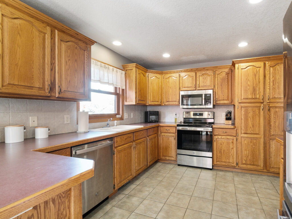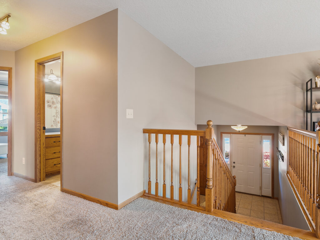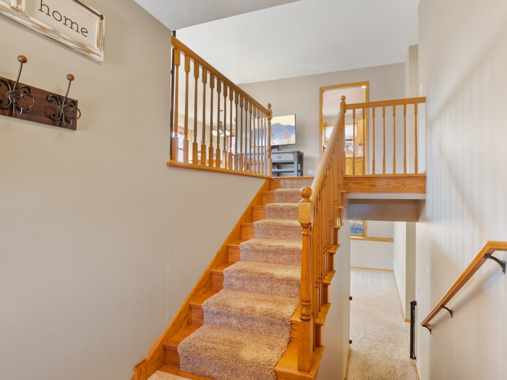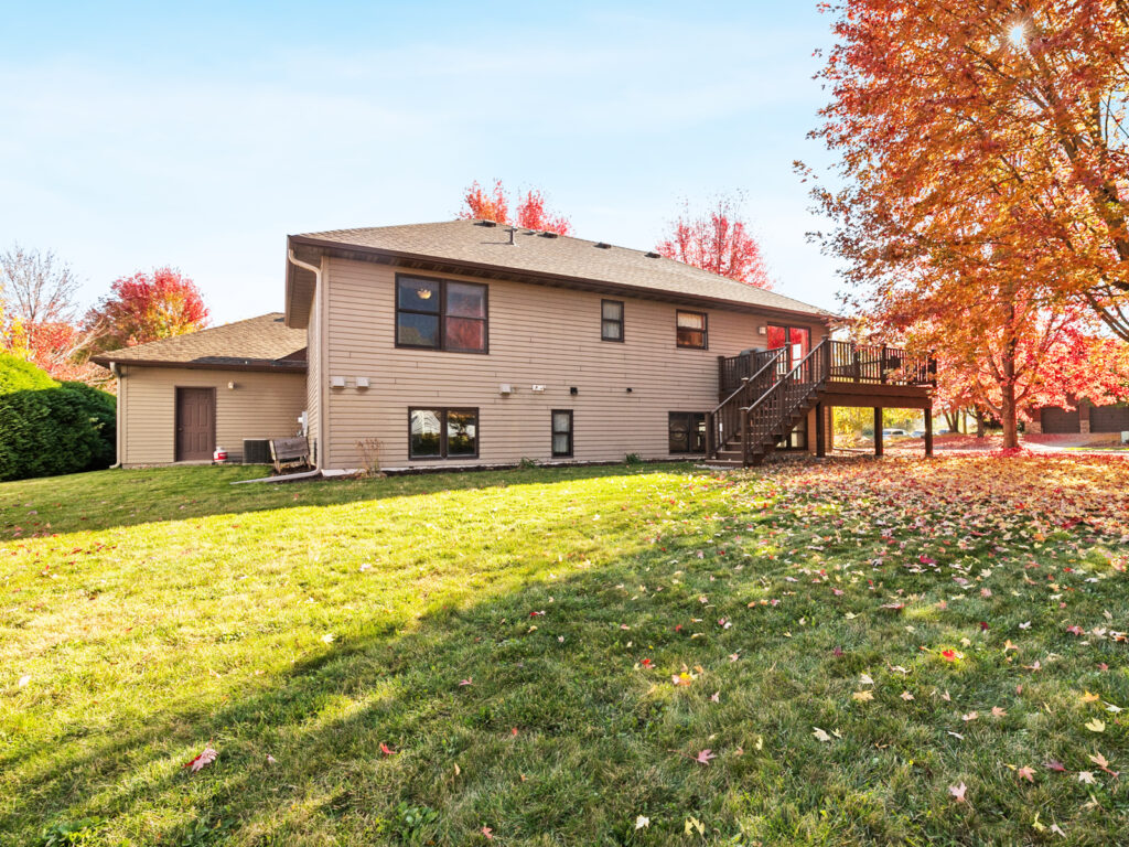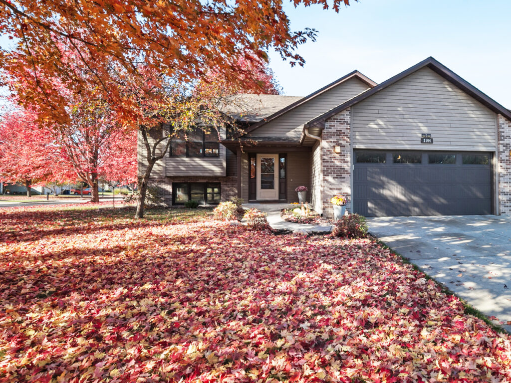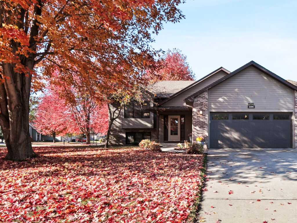 Splendid 3 Bedroom, 3 Bath, 3 Car Garage, Split entry home in a nice neighborhood and within walking distance to schools and parks! Notice the larger .29 acre lot, cement driveway, home brick accents and larger entry upon arrival at the home. Short distance to both Aspen and Spring Creek Parks. Kitchen with stainless steel appliances, custom cabinetry, good counter space. Note the pull-out shelves with the kitchen cabinetry. Includes hardwood floor in dining area, oak railing, raised 6 panel doors, box-bay window, tile floor in bathrooms, lawn sprinkler system and nice deck w/stairs. Larger open spaced Family Room with a raised hearth gas fireplace w/ an oak mantel & surround, good sized bedrooms, primary bedroom with a 3/4 bath and walk-in closet, walk-in closet in basement bedroom as well. Also, with 3 year old roof shingles. See while this home is available.