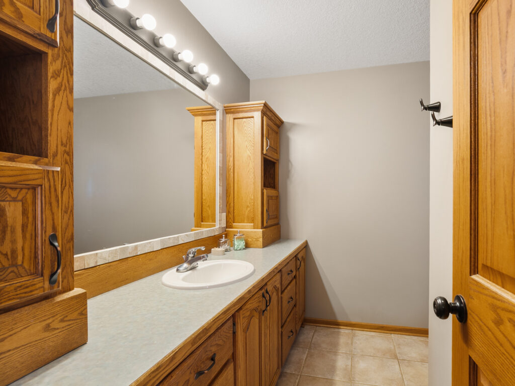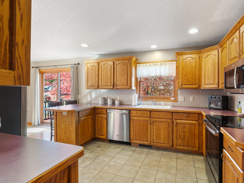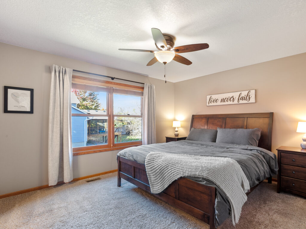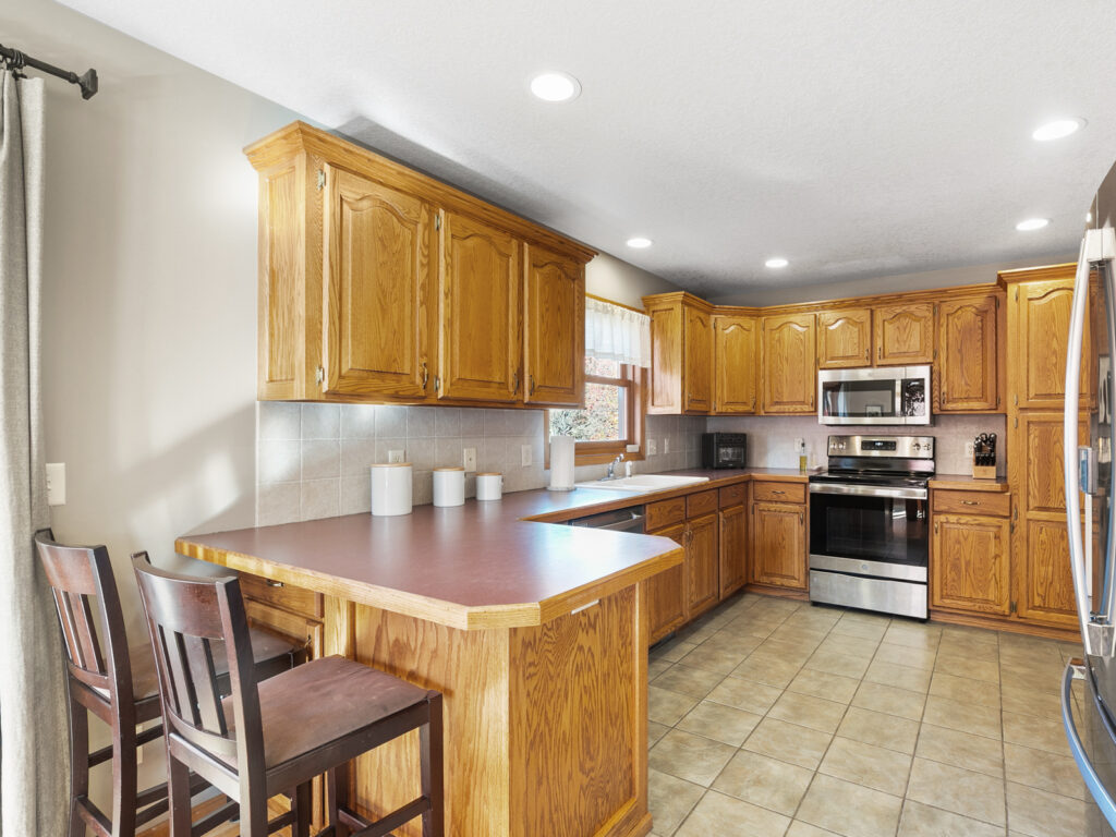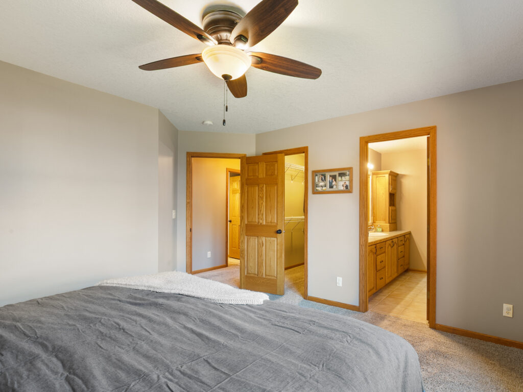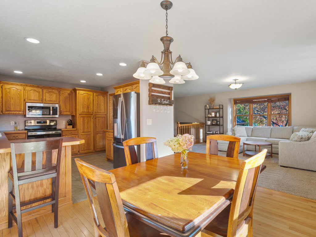 Splendid 3 Bedroom, 3 Bath, 3 Car Garage, Split entry home in a nice neighborhood and within walking distance to schools and parks! Notice the larger .29 acre lot, cement driveway, home brick accents and larger entry upon arrival at the home. Short distance to both Aspen and Spring Creek Parks. Kitchen with stainless steel appliances, custom cabinetry, good counter space. Note the pull-out shelves with the kitchen cabinetry. Includes hardwood floor in dining area, oak railing, raised 6 panel doors, box-bay window, tile floor in bathrooms, lawn sprinkler system and nice deck w/stairs. Larger open spaced Family Room with a raised hearth gas fireplace w/ an oak mantel & surround, good sized bedrooms, primary bedroom with a 3/4 bath and walk-in closet, walk-in closet in basement bedroom as well. Also, with 3 year old roof shingles. See while this home is available.